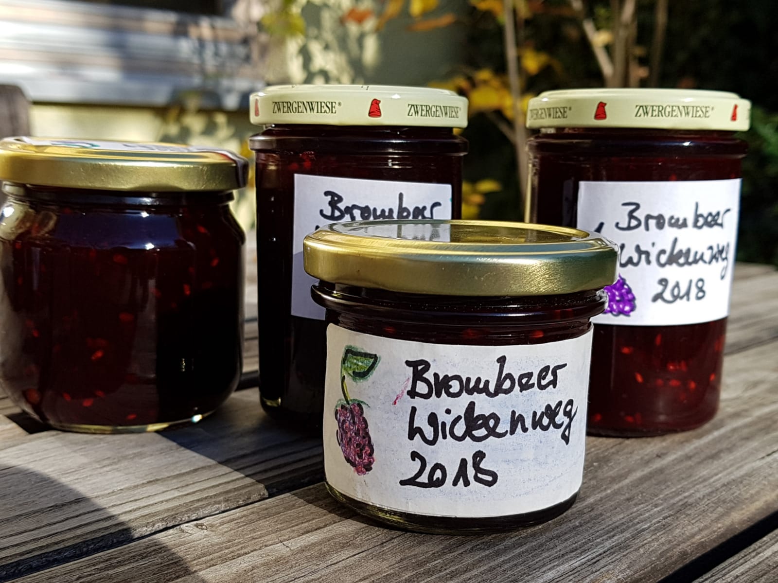 Es hat etliche Jahre gedauert, bis die ersten stachellosen Sorten der Brombeere in Sachen Fruchtqualität und Ertrag mit dem Klassiker ‘Theodor Reimers’ mithalten konnten. Die dornenlose Sorte ‘Loch Ness’ wächst inzwischen im Garten meiner Schwester mitten in Druxbergen. Die Sorte ist zwar dick, rund und geschmacklich eine der besten, aber trotzdem leider weitaus nicht so vollaromatisch wie die kleinen stacheligen. Fürs Einkochen aber sind die kleinen prallen Früchte ideal. Es scheint, dass erst der Prozess des Einfrierens die ganzen Aromen zu Tage bringt. Dieses Jahr war die Ernte reichhaltig. Also ab in den Gefrierschrank.