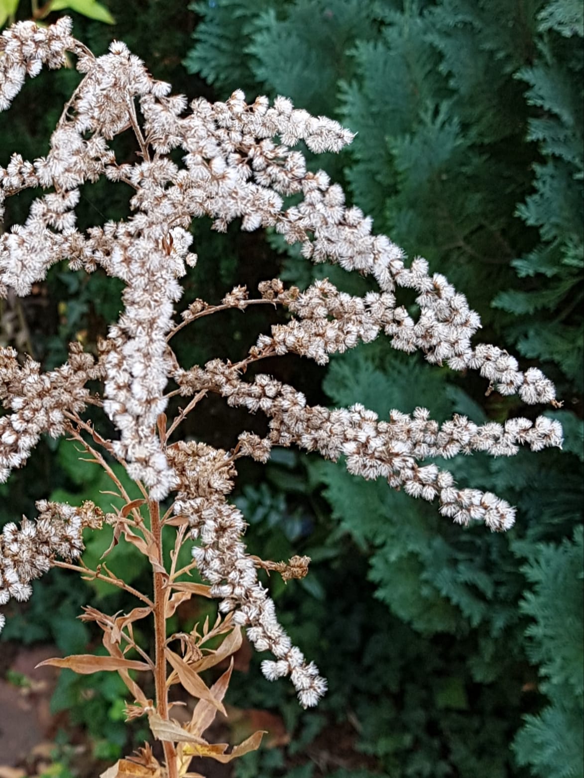 Und was kann man alles noch in der Natur entdecken. Da verströmt die Blume am Wegrand mit aller macht ihre letzte Blühkraft. Der Beerenbusch fängt erst noch damit an, tiefrote Kugeln zu formen. Der Farn verkleidet sich in ein eisgraues Kleid. Der Lampion weist uns mit seiner roten Laterne den Weg. Und das schönste: Beim Heimkommen noch kurz auf die Bank im Garten setzen bei einem guten Glas Wein.