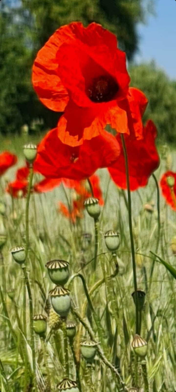 Der Klatschmohn springt uns im Juni und Juli auf Wiesen und Feldern überall als leuchtend roter Farbtupfer in die Augen. Früher waren Äcker nach dem Pflügen im Frühjahr geeignete Wuchsorte für den Mohn. Sie wären es noch heute, wenn nicht reineres Saatgut und der Einsatz von Herbiziden dafür Sorge trüge, dass nur die Pflanzen auf dem Acker gedeihen können, die vom Bauern gesät wurden. Die einzelne Blüte lebt auch auf dem Feld nur 1-2 Tage. Dafür werden laufend neue Blüten gebildet, so dass uns der Mohn von Mai bis Ende Juli mit seiner Farbenpracht erfreut.